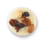 Mendiants (Disque de chocolat au lait décoré de noix de pécan et fruits secs)